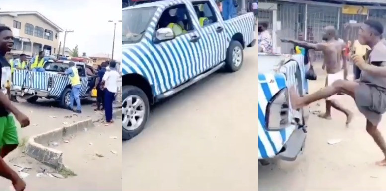 Angry Nigerian Youths Attack Taskforce Team Deployed To Enforce Sit At Home Order (VIDEO)