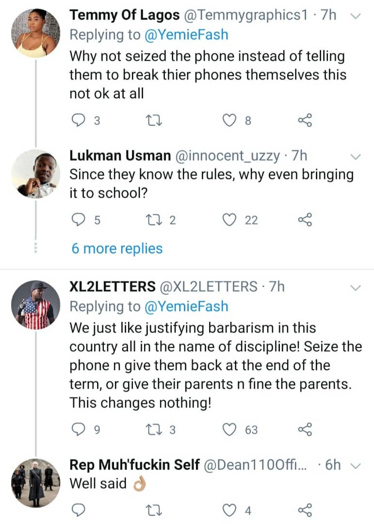 Nigerians react to video of teacher asking a student to destroy her phone and those of her schoolmates