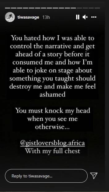 “You hated how I was able to control the narrative and get ahead of a story before it consumed me and how I’m able to joke on stage about something you taught should destroy me and make me feel ashamed. You must knock my head when you see me otherwise…” she wrote.